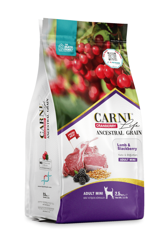 Taze kuzu eti (%20), kılçıksız buğday (%19), doğal ekstrakte bezelye unu, balık proteini unu, bezelye proteini, ayçiçek yağı, kuzu proteini unu (%5), keten tohumu, hidrolize kuzu, pancar posası lifi, yulaf, bezelye lifi, kuru kızılcık (%0,5), Norveç ladininden MOS (%0,5), kuru havuç (%0,5), kuru böğürtlen (%0,5), taurin (%0,1), karnitin (100 mg/kg), glukozamin (600 mg/kg), kondroitin (500 mg/kg), inülin, metiyonin, antioksidan