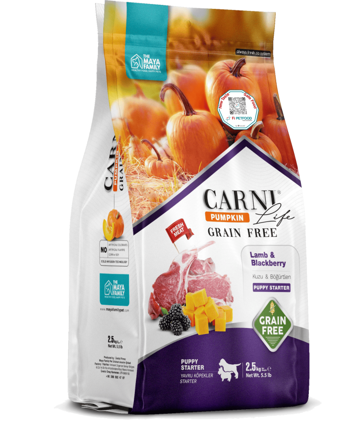 Taze kuzu eti (%21),kuzu proteini unu (%21), doğal ekstrakte bezelye unu, kümes hayvanları yağı, kurutulmuş tavuk eti (%6), kurutulmuş bal kabağı (%5), hidrolize tavuk ciğeri, kurutulmuş kril (%2), kurutulmuş yumurta, pancar küspesi lifi, bira mayası, balık yağı, bezelye lifi, Norveç ladininden MOS (%0,5), kurutulmuş böğürtlen (%0,3), kurutulmuş ıspanak, kurutulmuş havuç, kurutulmuş rezene, taurin (%0,1), karnitin (100 mg/kg), glukozamin (600 mg/kg), kondroitin (500 mg/kg), inülin, metiyonin