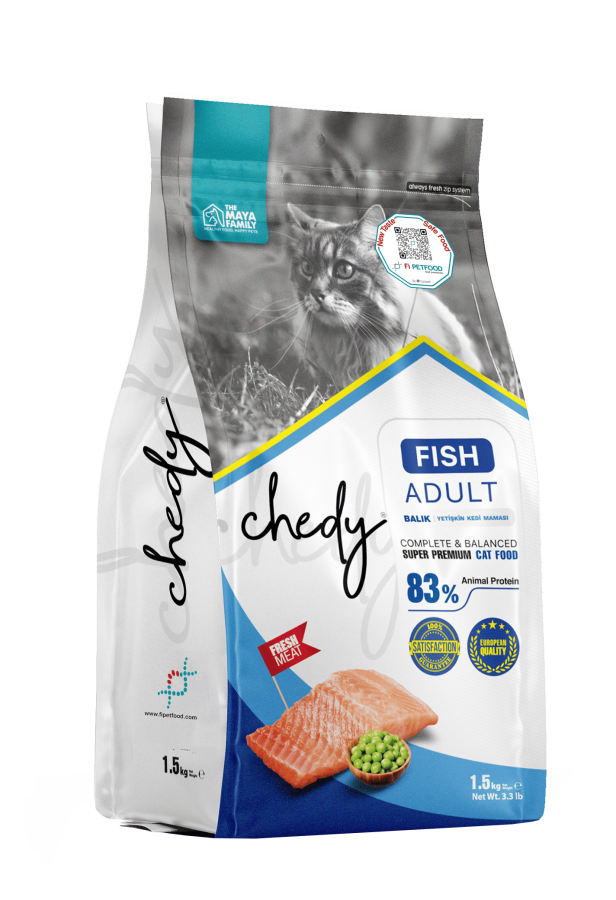Kümes hayvanları unu, mısır, bezelye unu, balık unu %8,5,taze balık eti %8 , kümes hayvanları yağı, kuru tavuk eti, hidrolize karaciğer, pancar posası, bira mayası, pirinç, bezelye lifi, balık yağı %0,5, mannan oligosakaritler , taurin 0,1%, karnitin 100mg/kg, glukozamin 600 mg/kg, kondroitin 500 mg/kg, inülin, hindiba lifi, metiyonin, antioksidanlar