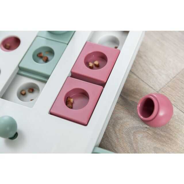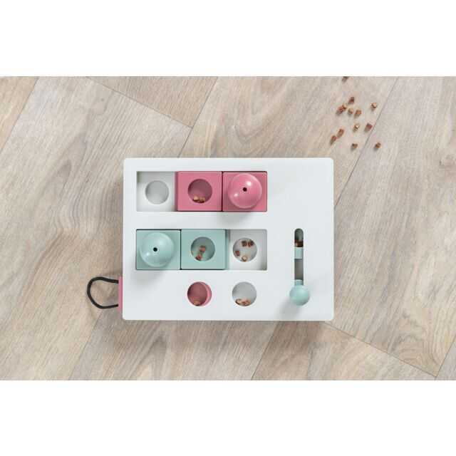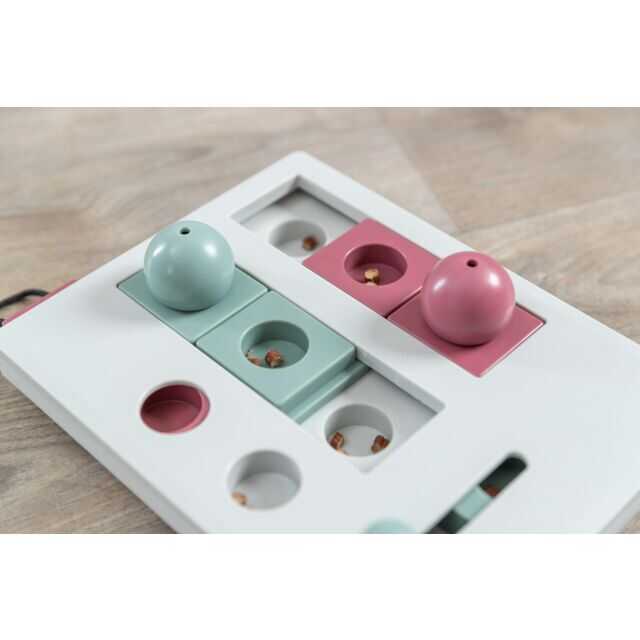 Kedinizin zihinsel ve fiziksel becerilerini geliştiren interaktif bir strateji oyunudur. 25 x 20 cm boyutlarındaki oyun tahtasında top şeklinde kapaklar, sürgülü çekmeceler, dönme saplı bölmeler ve küçük çekmeceler bulunur. Kediniz, bu modülleri patisi veya burnuyla hareket ettirerek içerisindeki ödüllere ulaşır, böylece doğal av içgüdüleri harekete geçer ve zihinsel uyarım sağlar. Kaymaz lastik ayakları sayesinde sabit duran oyun, kutusundaki talimatlarla birlikte gelir ve kedinizin problem çözme yeteneklerini geliştirirken sağlıklı şekilde enerjisini atmasına yardımcı olur.