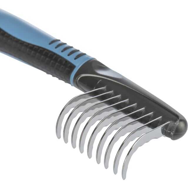 Hem üst tüyü hem de alt tüyü açmada ideal bir bakım aracıdır. 3,5 cm uzunluğundaki metal dişleri, tüyleri nazikçe tarar ve matlaşmaları çözer. Kauçuk kaplamalı plastik sapı sayesinde güvenli ve kaymaz bir tutuş sunar; 18 cm uzunluğu, orta-büyük köpek ırkları için uygundur.